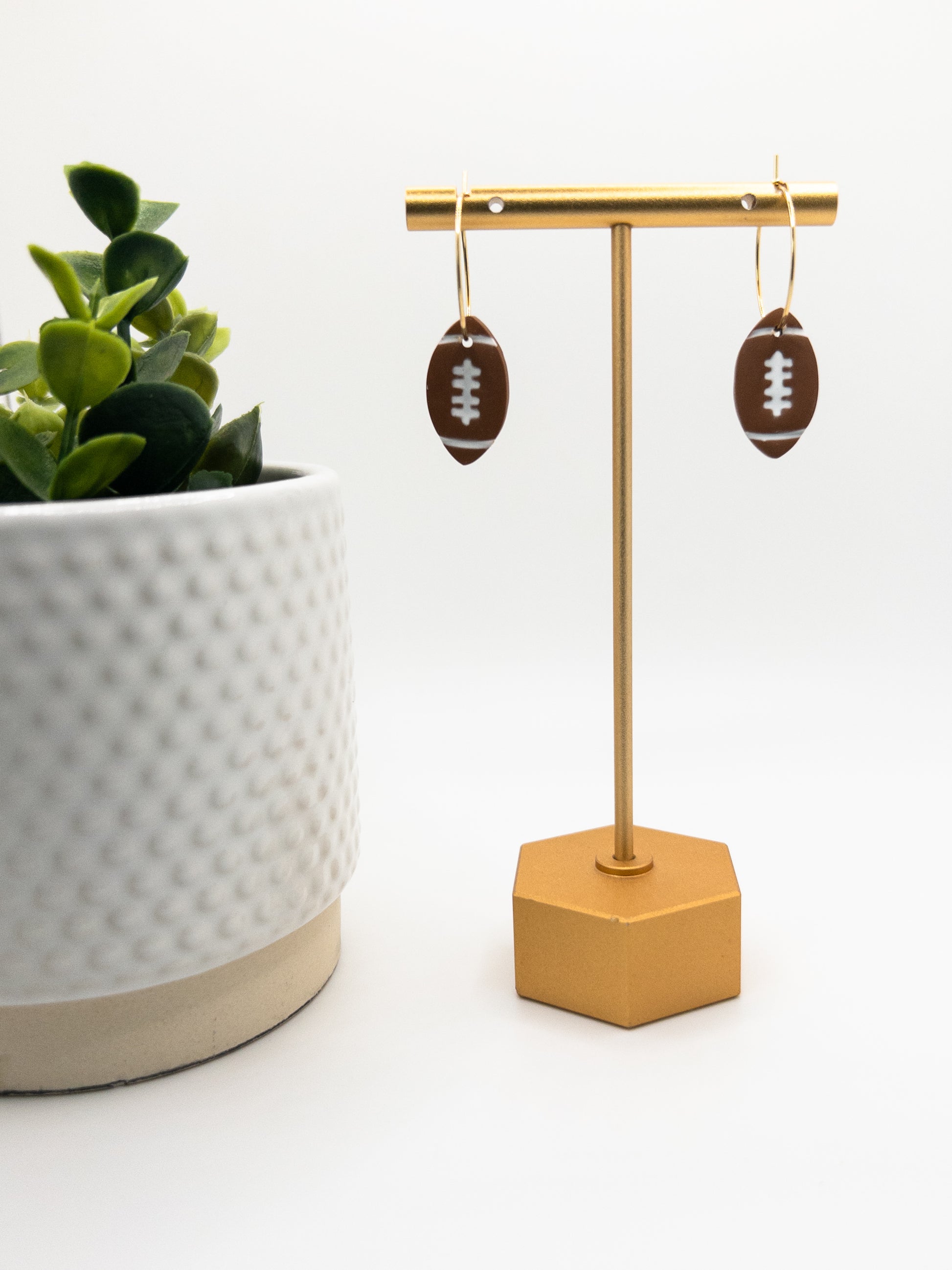 Game day ready—these football hoop earrings are the perfect mix of sporty and stylish. Handmade from lightweight polymer clay with gold-plated stainless steel/brass hoops, they’re a fun way to show your team spirit all season long.